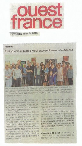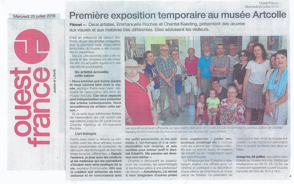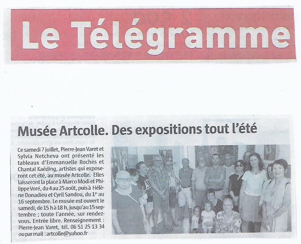 La presse locale pré-annonce les expositions temporaires de : Emmanuelle Roches, Chantal Kaeding, Cyril Sandou, Hélène Michel Donadieu, Marco Modi, Philipp Voré - merci aux membres du conseil d'administration pour que "tout colle" : Joëlle Clisson, Evelyne De Cellès, Silvia Netcheva, Catherine Nilias, Claudine Scolan, Gilles Chavin-collin, etc.