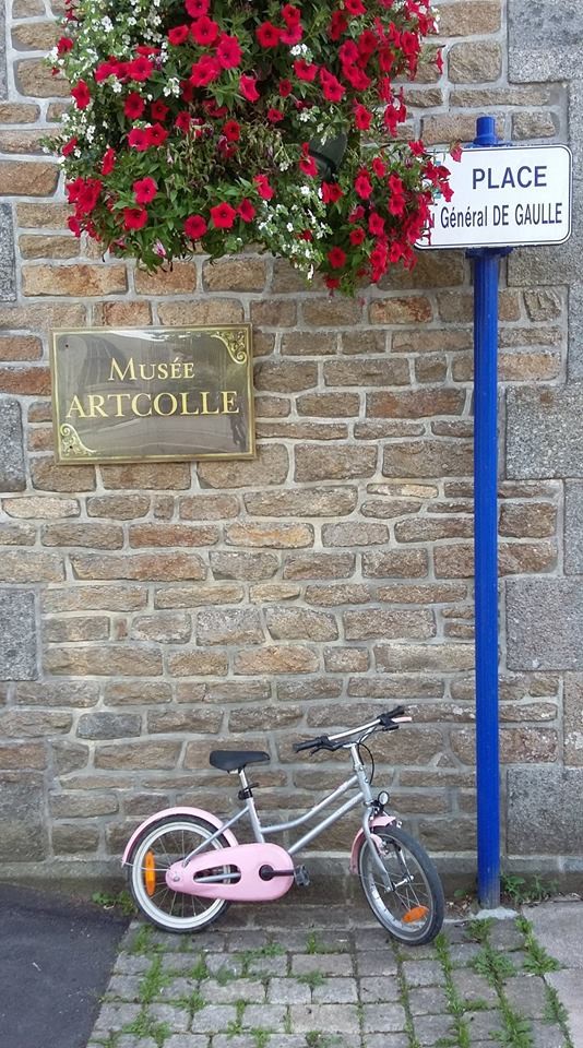 Un musée unique – il s’agit du musée de l’art du collage – et libre d’entrée, c’est-à-dire sans barrière monétaire, cela offre parfois l’occasion d’avoir des visiteurs hors normes : comme cette petite fille qui a pris soin de « garer » son vélo avant de visiter toute seule le musée. Ce sont ces petits rien qui susurre à mon oreille qu’Artcolle est bien plus qu’un musée – des petits rien qui valent bien mieux que la visite d’un ministre ou d’une incommensurable subvention. La liberté est un art -disait l’ami Jiri Kolar – la liberté de pratiquer l’entrée libre est un luxe que seuls les pauvres peuvent offrir – et ce petit vélo blanc-rose devant le musée Artcolle en est le plus beau témoignage, et ma plus belle récompense. Des millions de collagistes, un seul musée de l’art du collage