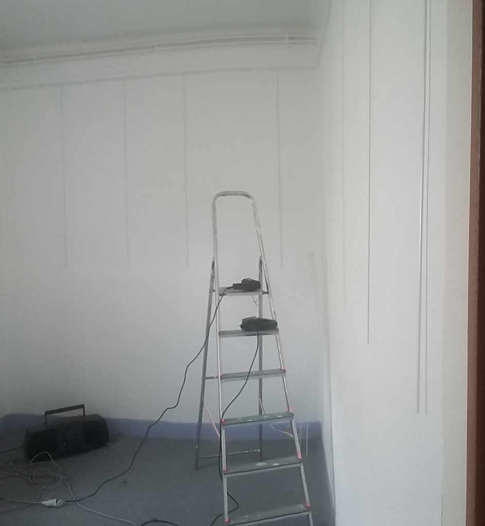 Reprise de l’atelier bricolage dans la future 6ème salle d’exposition du musée Artcolle : perceuse, scie sauteuse, rails, vis et chevilles ont été conviées pour fixer les rails et cimaises nouvellement achetées. Merci aux adhérents de l’association Artcolle, ces amoureux de l’art du collage qui soutiennent concrètement le musée - sans eux rien ne serait possible.