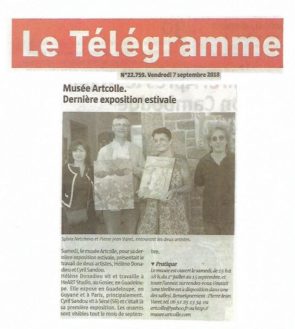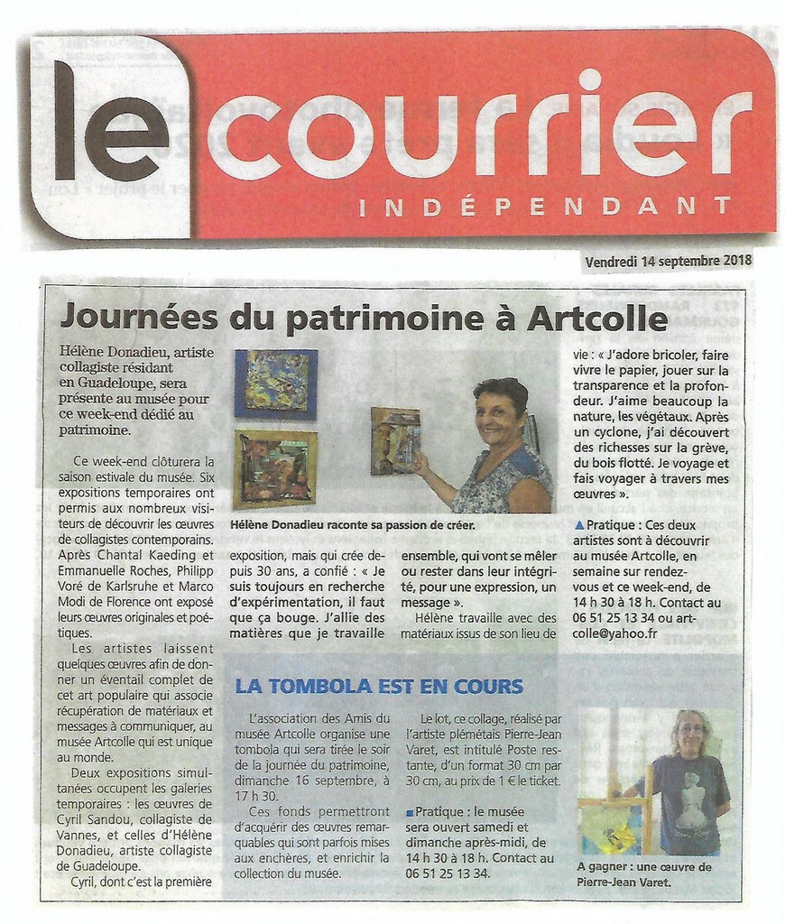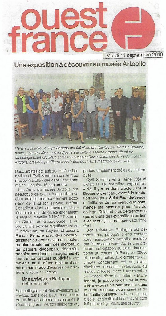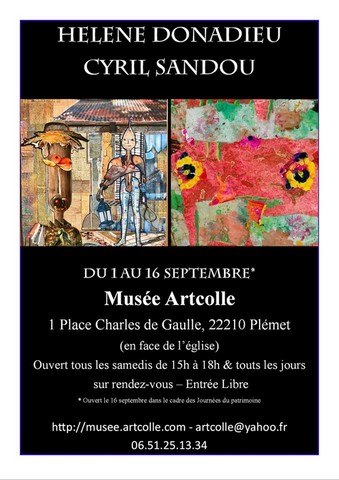 Du 1er au 16 septembre le musée Artcolle présente deux expositions temporaires de deux grands maestros de l’art du collage : Hélène Michel Donadieu et Cyril Sandou. Et toujours 200 œuvres (150 collagistes de 23 nations) en exposition permanente. Entrée libre.