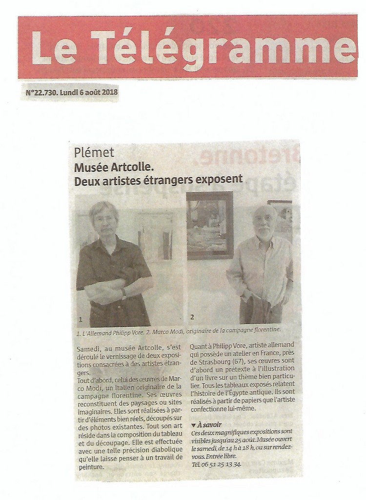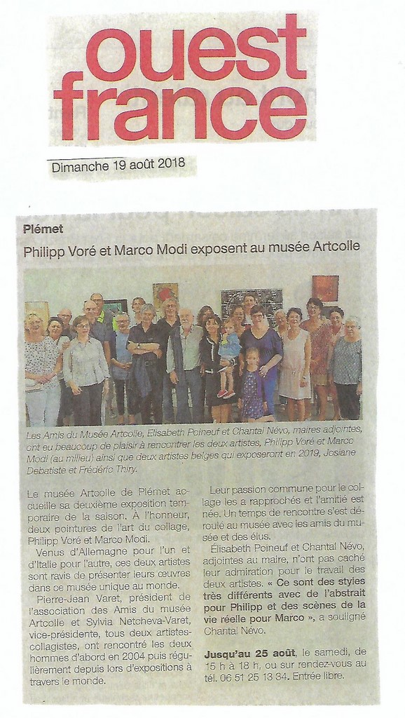 Du 4 au 25 août le musée Artcolle présente deux expositions temporaires de deux grands maestros internationaux de l’art du collage : Marco Modi (Italie) et Philipp Vore (Allemagne). Et toujours 200 œuvres (150 collagistes de 23 nations) en exposition permanente. Entrée libre.