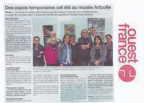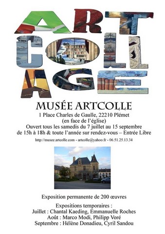 Cet été à Plémet (Côtes d'Armor) le musée Artcolle expose 200 œuvres (150 artistes, 23 nations représentées) extraites de sa collection permanente, ainsi que des expositions temporaires de collagistes contemporains :