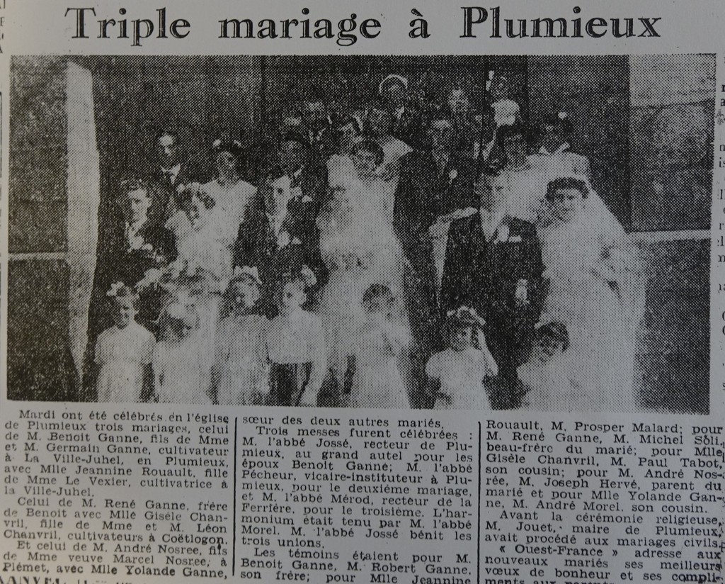Mais ma lettre ne se situe pas à ce genre d’anecdote. Ces derniers jours, pour les besoins d’un ouvrage en écriture, j’ai rendu visite à Yolande. Tu as écrit de nombreux papiers sur ses recherches généalogiques. De conversation en conversation, elle a fini par me confier que tu lui avais promis de faire des recherches afin de lui procurer une photocopie d’un article concernant son mariage, qui s’est déroulé à Plumieux en 1955. Cette confidence n’était pas une parole en l’air, mais une requête. En d’autres mots, elle m’a demandé si je pouvais m’en occuper. Comme si, de par cette proximité confuse que les gens m’attribuent à ton égard — peut-être due au fait que je parle de toi au présent — mais comment en pourrait-il être autrement ? — il leur semblait naturel de perpétuer leur demande auprès de moi. La même chose, quelques jours plus tard, avec Marcel. Là, il s’agissait d’un article que tu as écrit au début des années 2000 concernant la dissolution de son association : le même ton, la même confidence, chargée de la même attente.