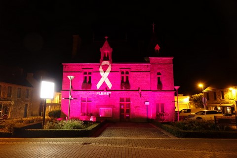Pour la deuxième année consécutive, et à l'initiative de la municipalité plémetaise Octobre Rose s'illumine chaque soir sur la façade du musée Artcolle.